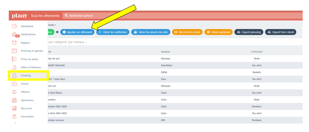Pour créer dans votre base un nouveau vêtement vous devez aller dans le menu DRESSING.