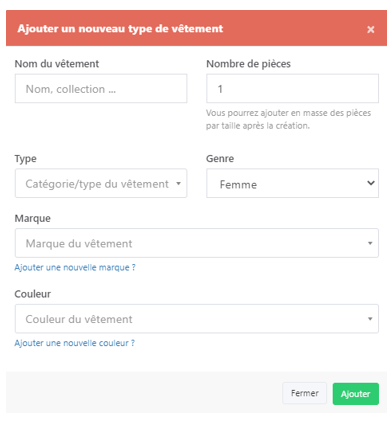 MARQUE = Marque du vêtement, vous pouvez ajouter de nouvelles marques qui seront ajoutés dans la liste.
