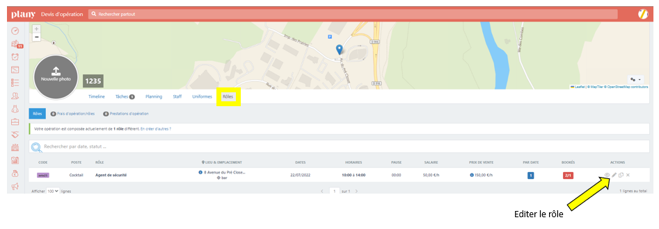 Lorsque votre opération est crée vous pouvez aller dans l’onglet ROLES pour ajouter des uniformes pour chaque groupe de personnes.