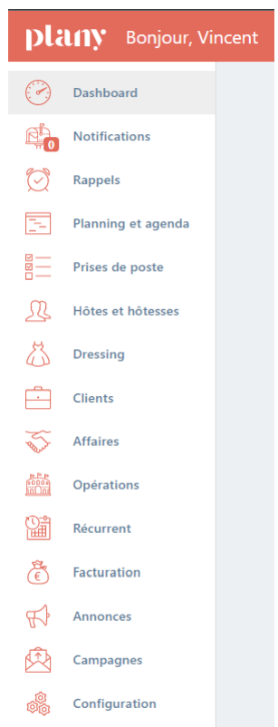• PLANNING ET AGENDA : Visualisez le planning des opérations événementielles à venir et leur niveau de booking (Ainsi que les entretiens avec des hôtes / hôtesses)