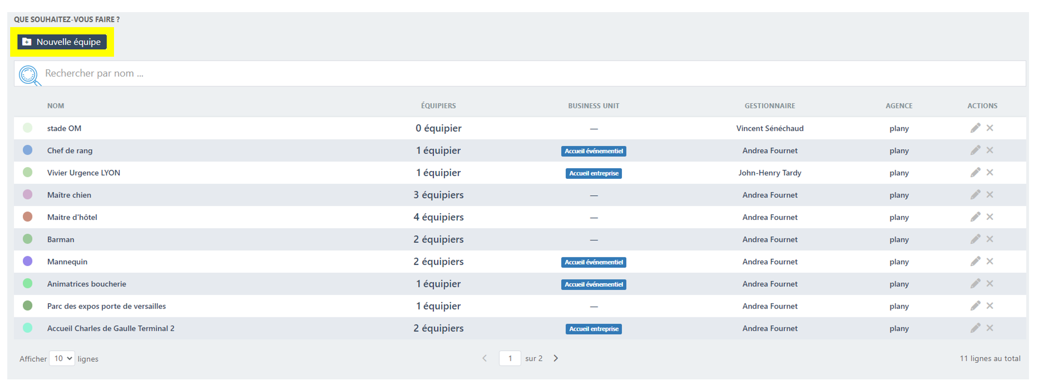 Donnez un nom à votre équipe et définissez qui s’en occupe. Vous pourrez ensuite depuis le profil de l’hôtesse l’affecter dans une équipe ou la supprimer de l’équipe.