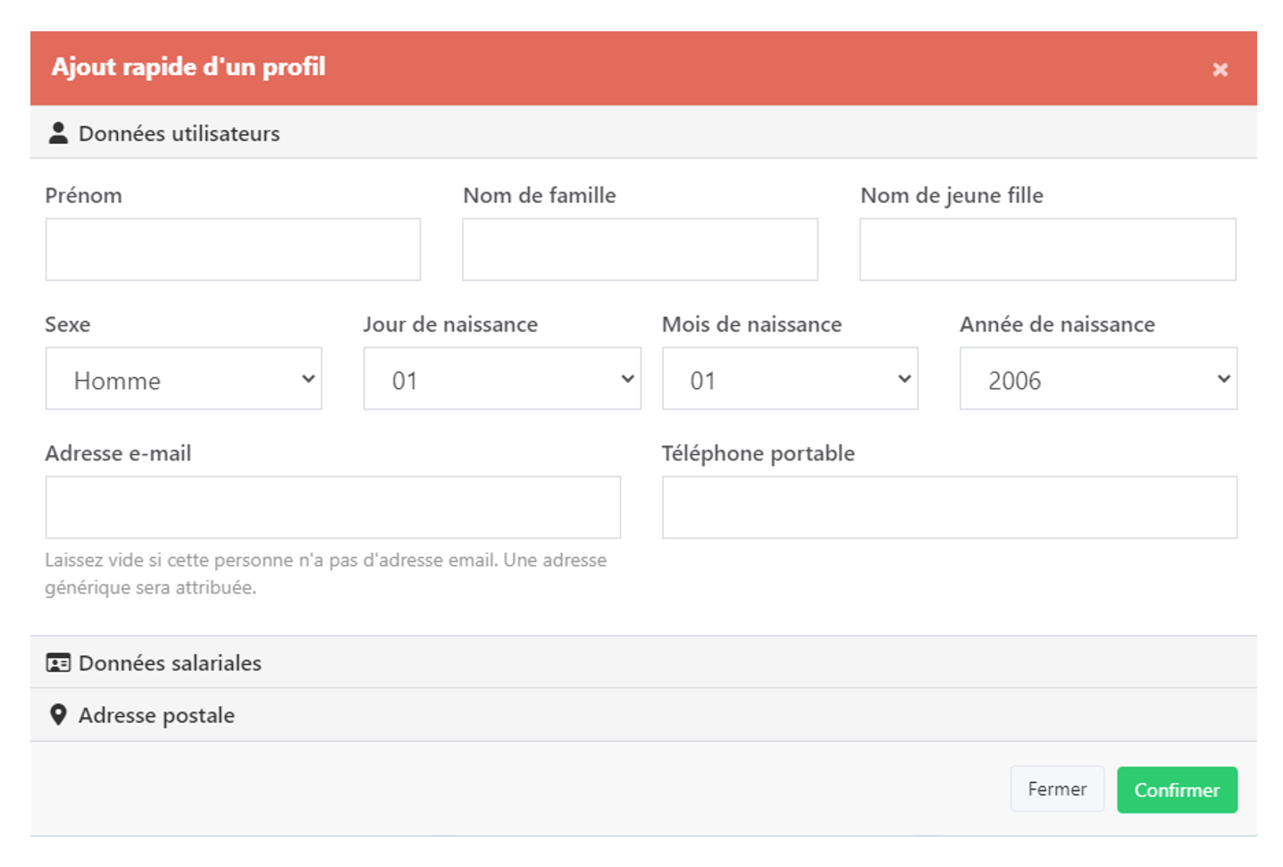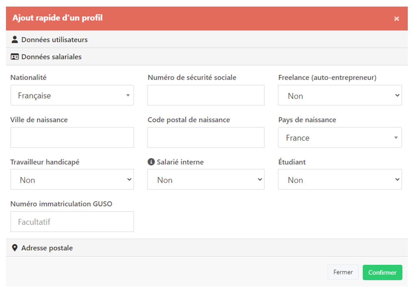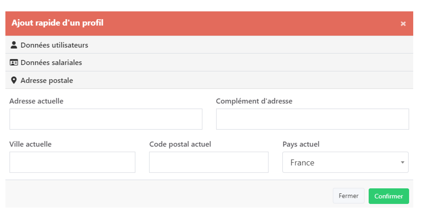 CRÉER UN NOUVEAU PROFIL = Ce bouton permet de créer un profil manuellement pour un utilisateur n’ayant par exemple pas d’adresse mail, cependant cette fonction ne respecte pas la RGPD, vous utilisez donc ce bouton à vos risques, l’amende en cas de contrôle étant de 4% du chiffre d’affaire de la société (Ou de sa holding)