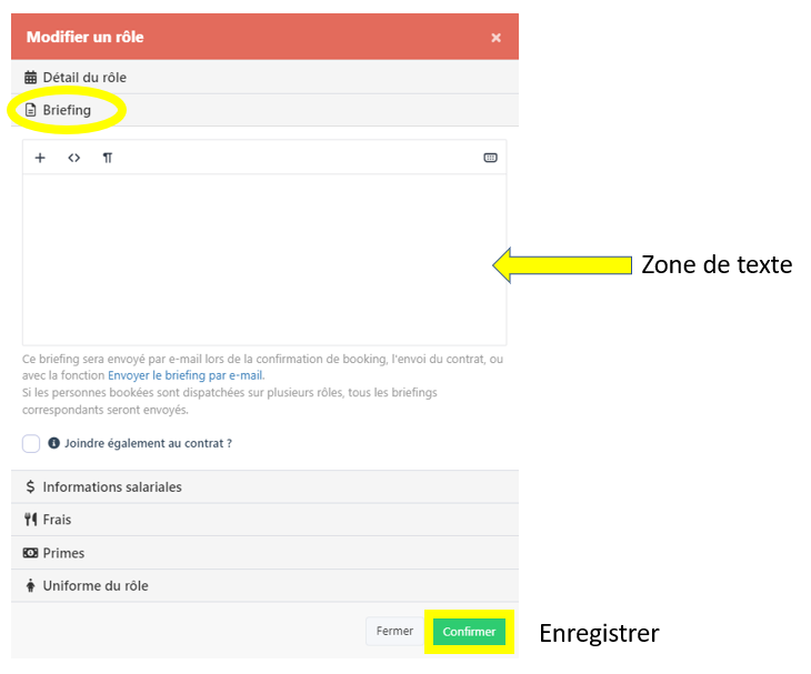 Pour compléter votre briefing général vous pouvez définir un briefing spécifique à un rôle.