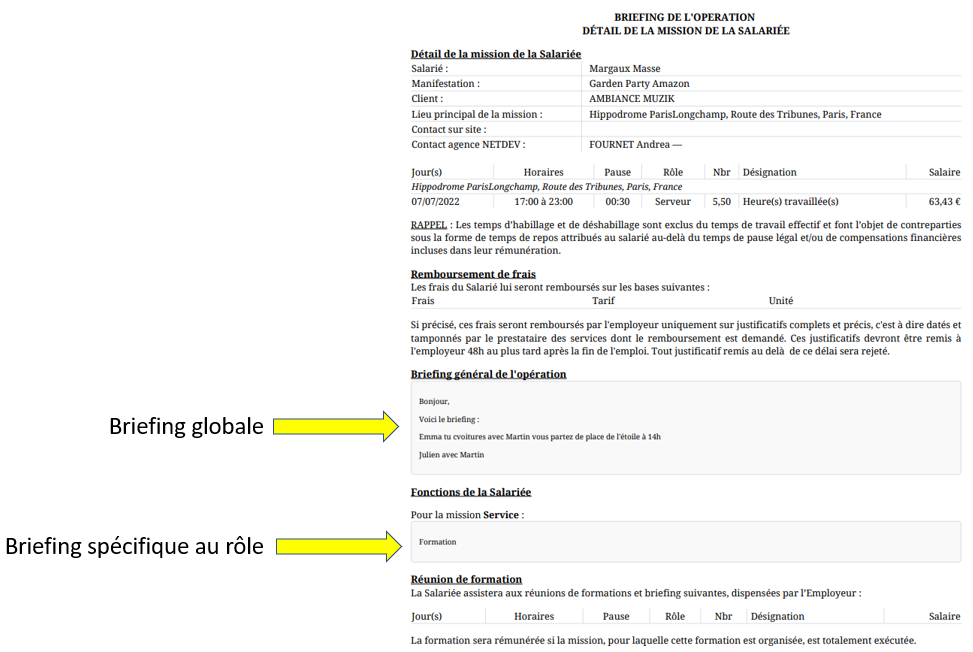 Si un profil à plusieurs rôles différents (Par exemple Manutentionnaire et Hôte) alors il verra 2 briefing différents avec l’indication des rôles lié au briefing spécifique.