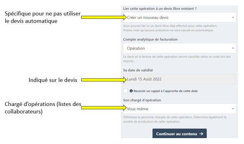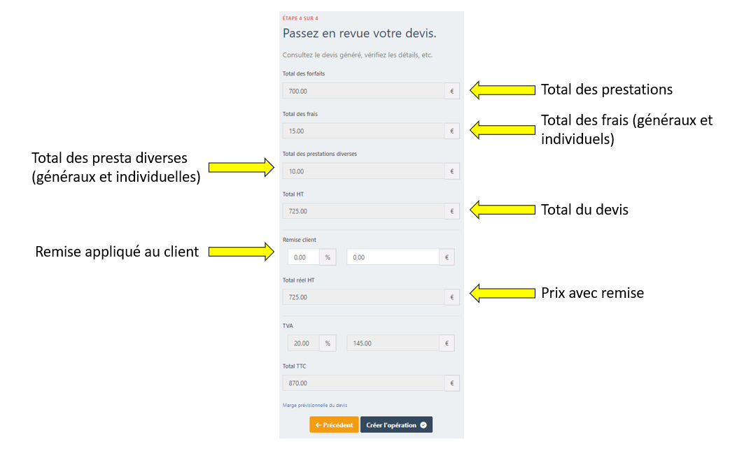 Cliquez sur CRÉER L’OPÉRATION pour valider votre devis