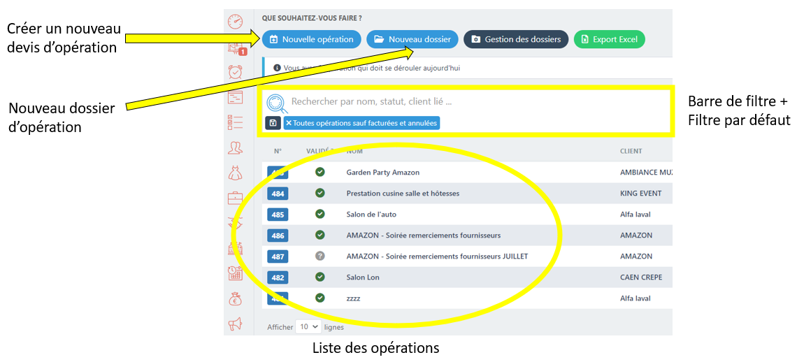 Allez dans le menu principal à gauche et cliquez sur OPERATIONS