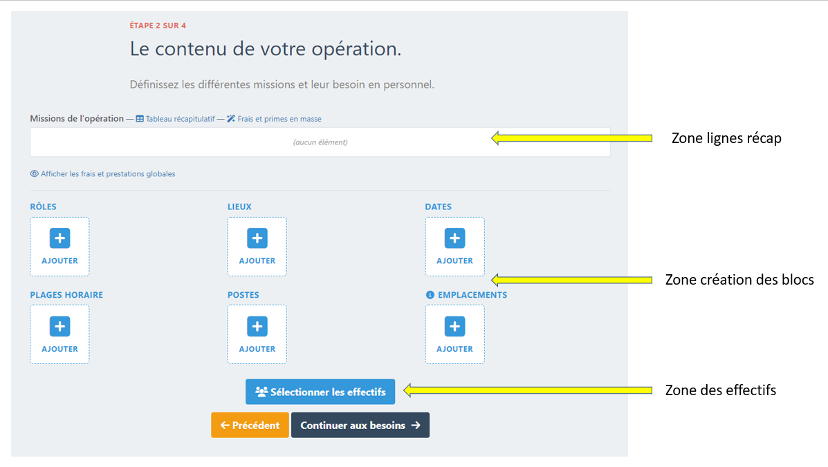 Après avoir rentré toutes les lignes nécessaires vous pouvez cliquer en bas sur Continuer aux besoins.