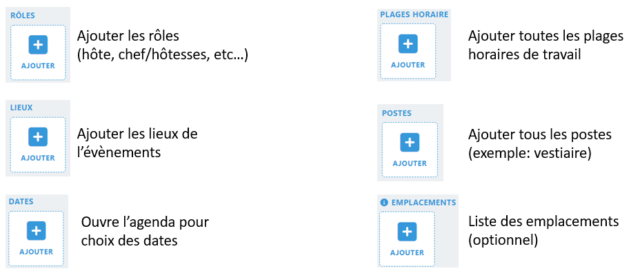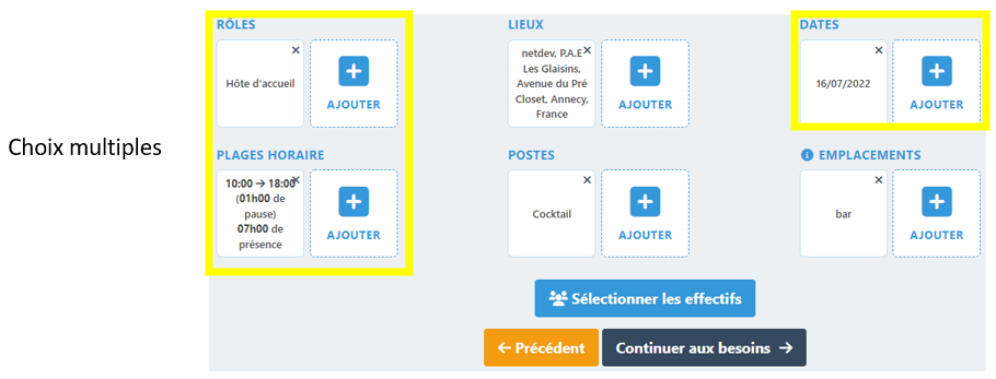 Dans un premier temps cliquez dans l’ordre sur chaque BLOC [AJOUTER] et créez toutes les informations dont vous avez besoin – Un menu déroulant avec la liste des propositions apparait sur certains champs (Exemple en dessous)