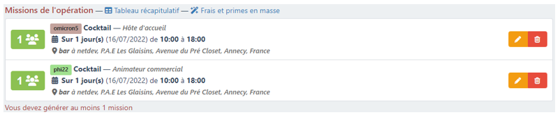 Cliquez ensuite sur GÉNÉRER LES MISSIONS