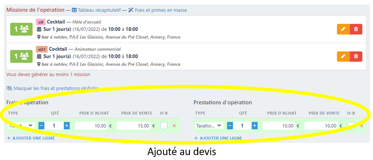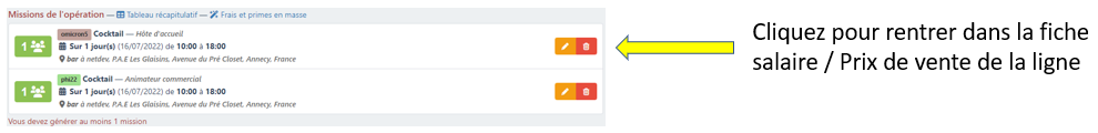 Par défaut lors de la création de vos lignes le salaire et prix de vente client choisit s’applique automatiquement.