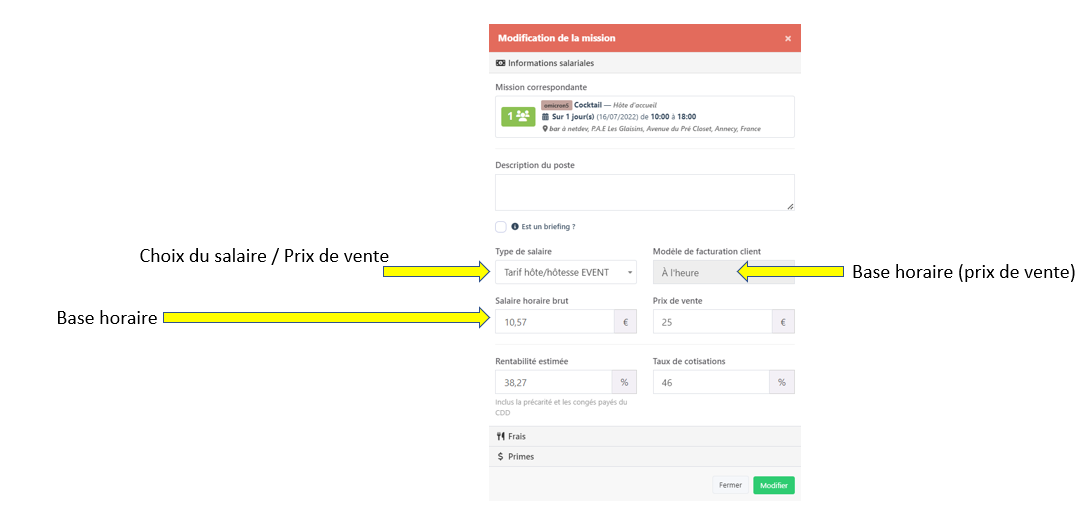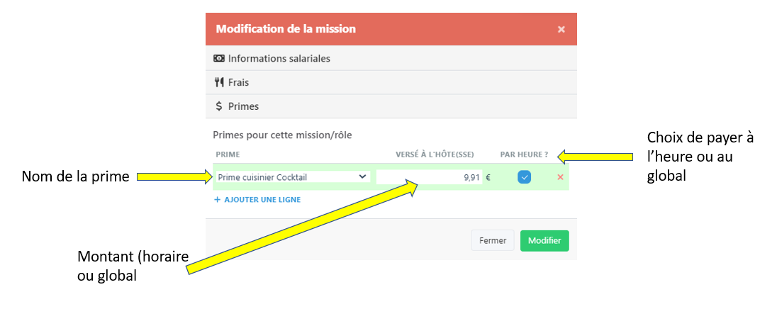 Les primes peuvent être utilisé pour donner un bonus par rapport au salaire horaire ou pour payer les intermittents au cachet (Comme ils ne disposent pas de salaire horaires)