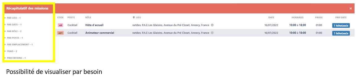 Après avoir cliqué sur le bouton TABLEAU RECAPITULATIF