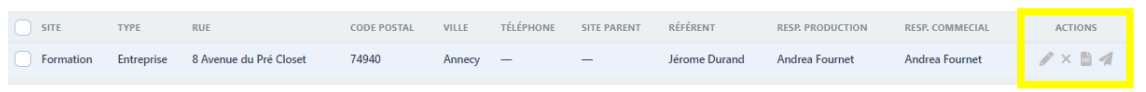 Dans l’onglet Actions vous pouvez modifier le site, le supprimer, exporter le planning PDF et envoyer le planning en PDF.