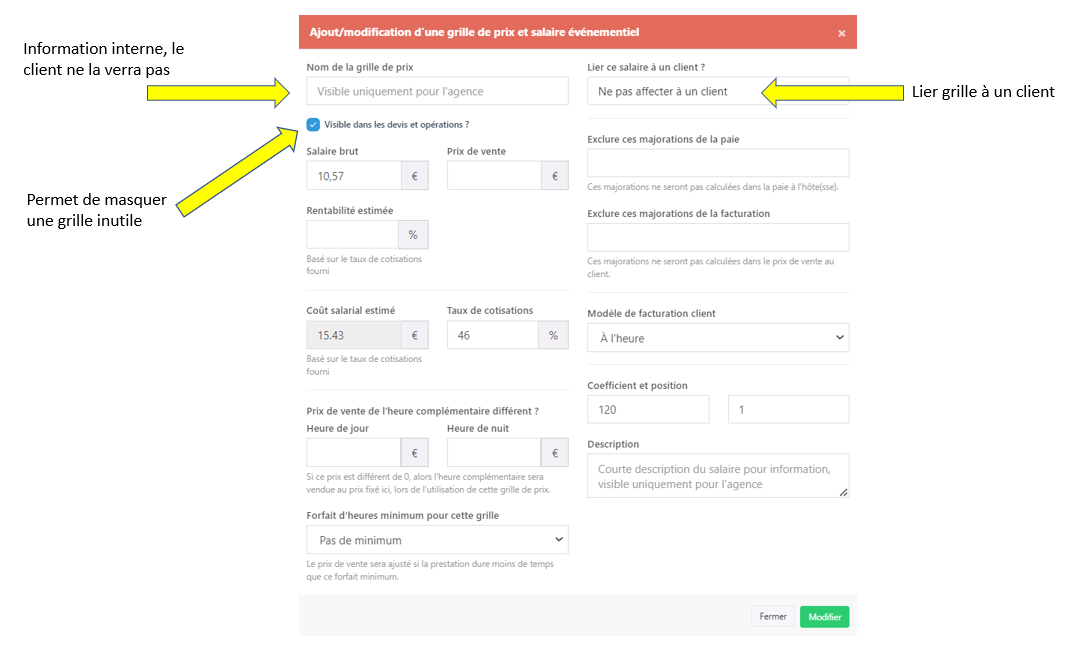 PRIX DE VENTE HEURE COMPLEMENTAIRE = A remplir uniquement si différent du taux horaire normal