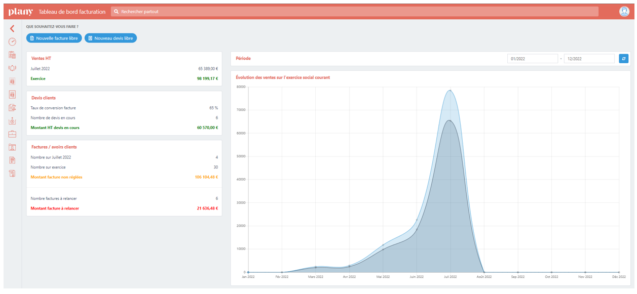 Le TABLEAU DE BORD résume les différents éléments de l’interface de facturation / devis