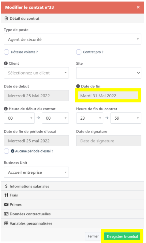 MODIFIER LE CONTRAT = Vous permet d’ouvrir la