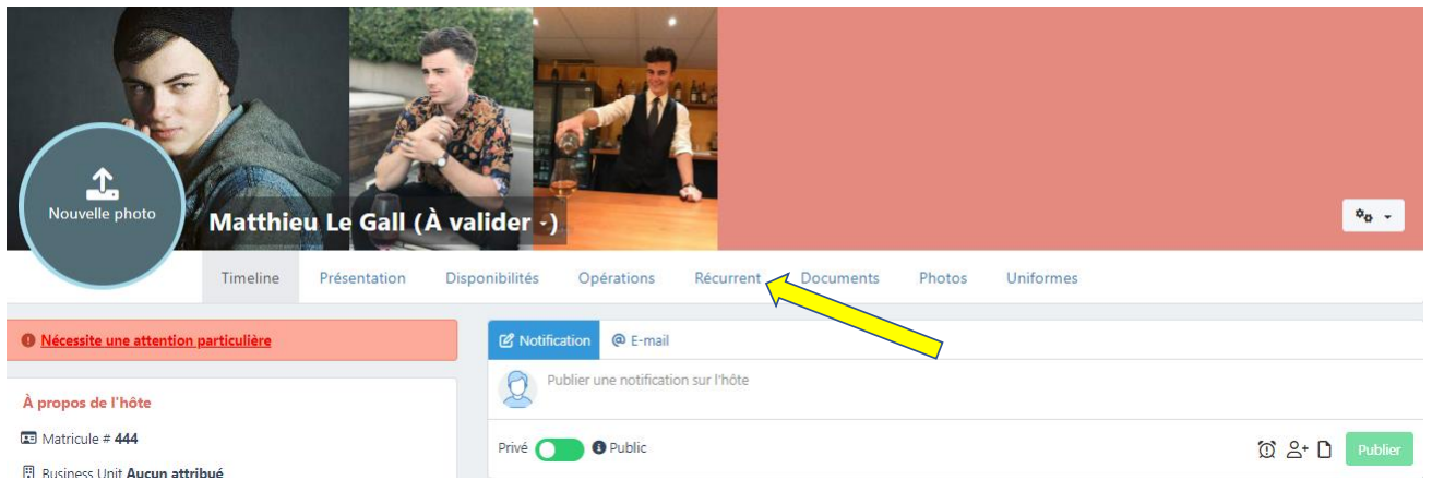 Cliquez sur l’onglet RECURRENT visible en haut du profil.