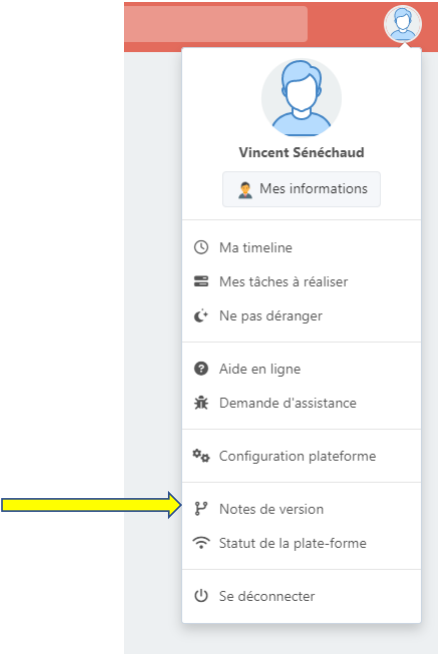 Cliquez sur votre avatar en haut à droite puis NOTES DE VERSION