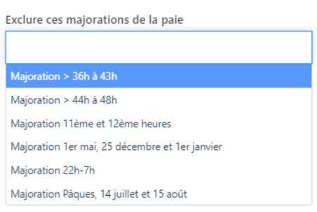 Liste des majorations automatiques que vous pouvez désactiver sur une grille de salaire et prix de vente.