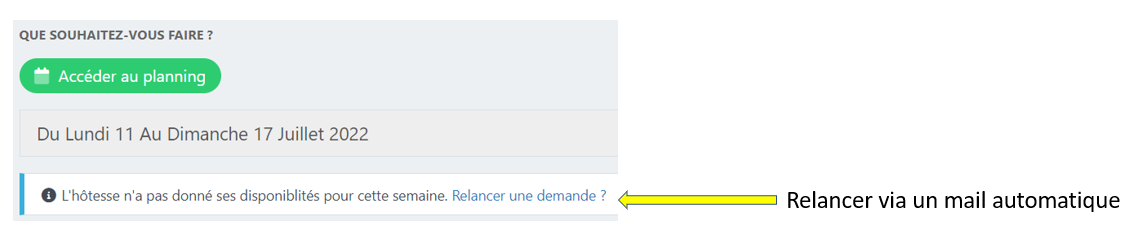 Vous pouvez cliquer sur le bouton relance quand le planning n’est pas rempli pour faire partir un mail pour demander automatiquement à l’utilisateur de mettre à jour son agenda